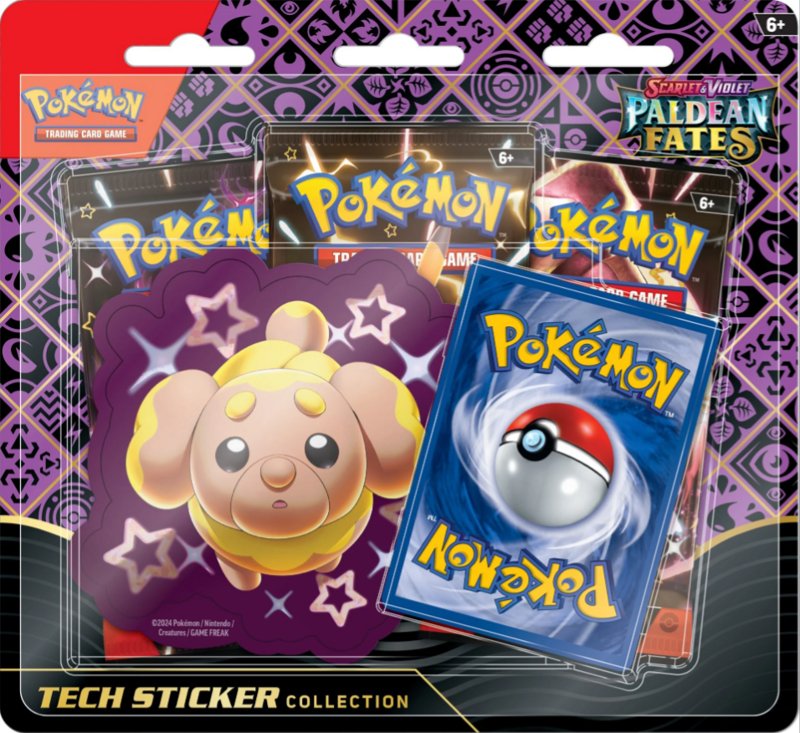 Description Pokémon Favourites in the Palm of Your Hand! Includes two Scarlet & Violet—Paldean Fates booster packs, one sticker sheet…