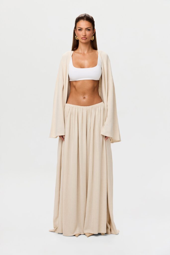Upgrade your wardrobe with our pleated linen wide leg pants. Designed with an elasticized waistband and relaxed finish that flows…