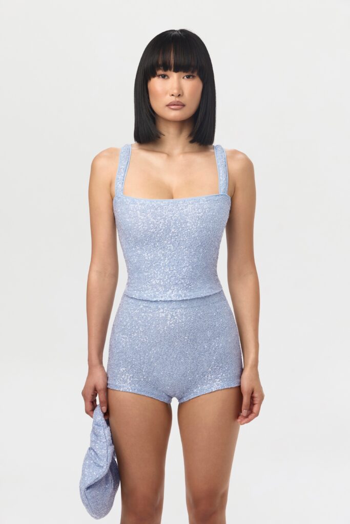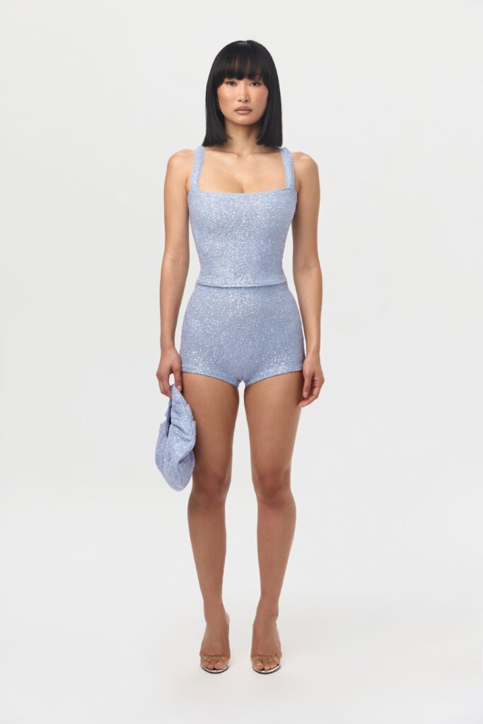Add some drama to your shorts collection with our eye-catching sequin hot pants. Crafted with an elasticized waistband and a…